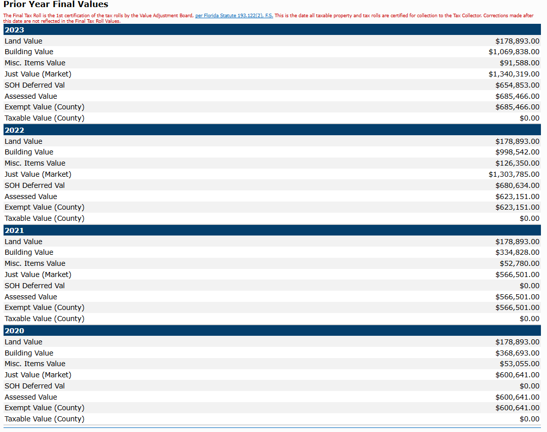 This area shows the changes in the values of the property over the previous 4 years. It helps give a reference point on how each item ties into the overall value of the property (whether increasing or decreasing value). |